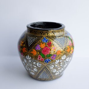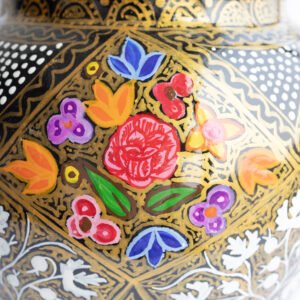 Unlike ceramic alternatives, this vase is surprisingly lightweight yet durable. Each piece is unique, showcasing the rich artistic heritage and Persian-inspired ‘Gul Vilayat’ designs of the Kashmir Valley. The final lacquer coating provides a smooth, glossy finish that protects the artwork and adds an elegant, luxurious touch to any home decor.